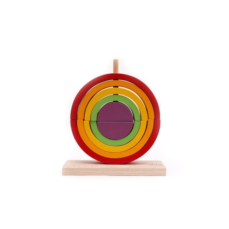 Su madera, imperfecta y natural, les da información sensorial muy valiosa. Sus piezas les ayudan a diferenciar formas y colores. Manipulándolo ganan destreza y coordinación. A través de él van comprendiendo conceptos complejos como el equilibrio, la simetría y la resistencia. Les abre la puerta de par en par al juego simbólico, a construir escenarios e imitar situaciones de la vida real.