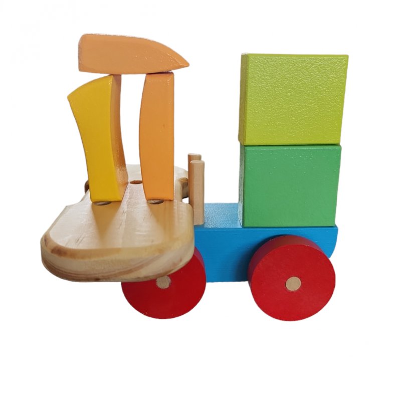 Rodado didactico de bloques desarmable, juego de ensarte, rompecabezas y arrastre.